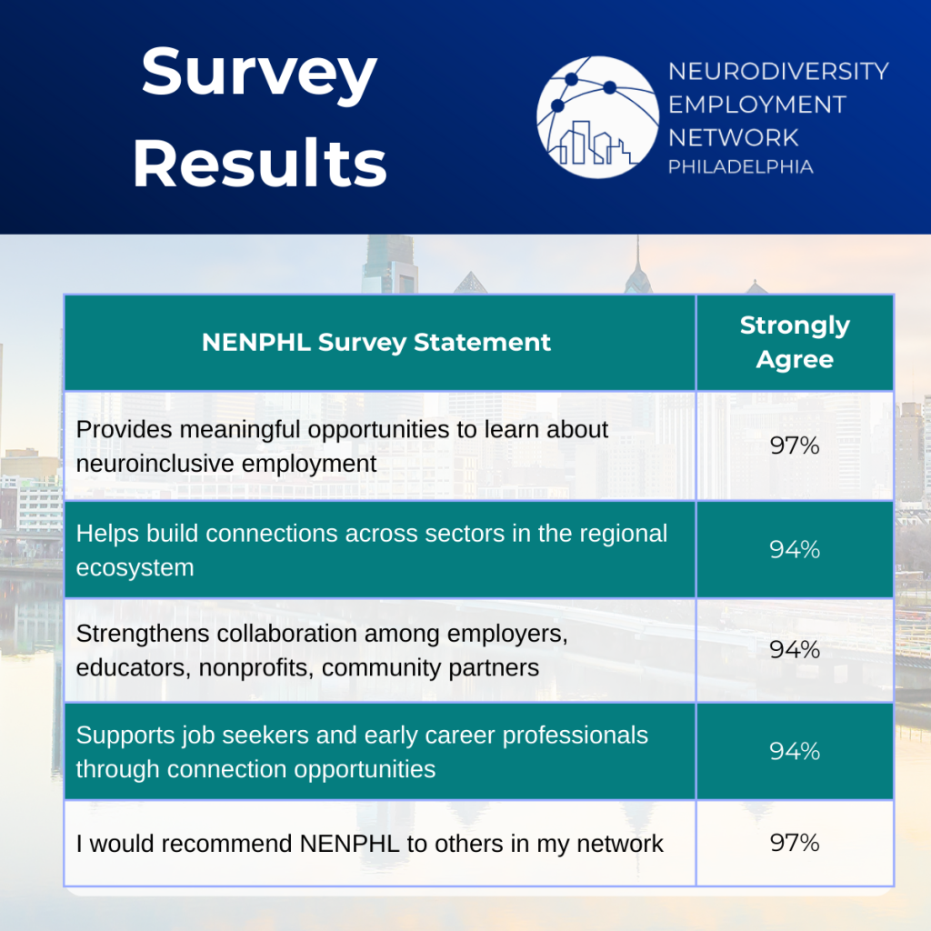 The Neurodiversity Employment Network was founded in 2018 by a group of professionals passionate about creating neurodiverse employment opportunities. Today, the Network connects neurodivergent job seekers with employers, educators, and service providers all across the Greater Philadelphia Area.