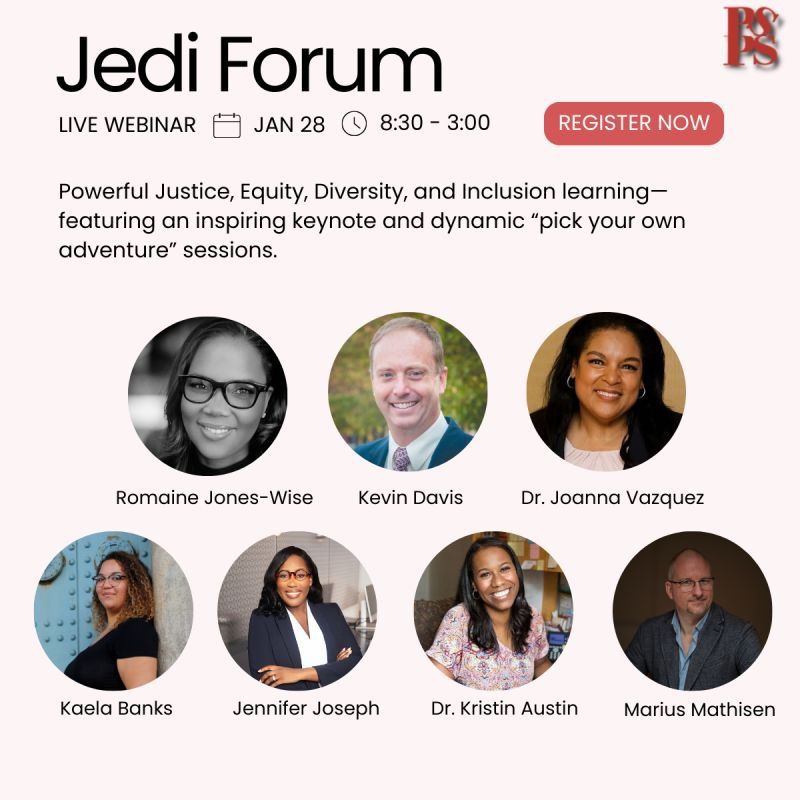 Join us for a full day dedicated to advancing Justice, Equity, Diversity, and Inclusion in the workplace. With a powerful keynote and flexible, repeatable learning tracks, this forum is designed to meet every attendee where they are on their JEDI journey.